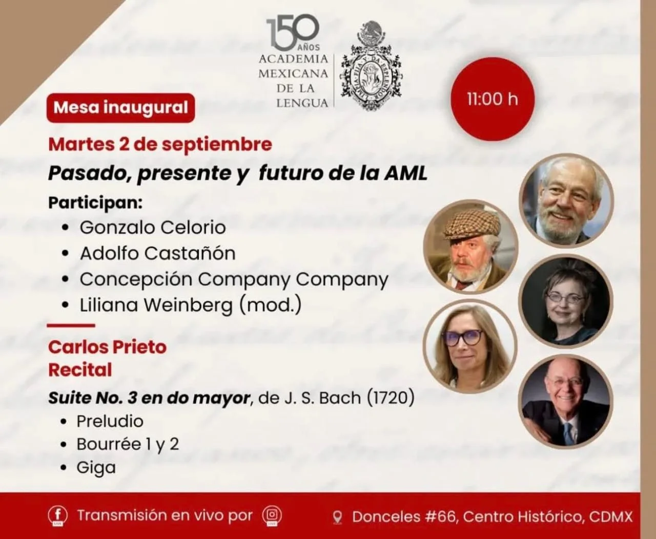 Participan Gonzalo Celorio, Adolfo Castañon, Concepción Company Company, Liliana Weinberg (moderadora), en el marco de los 150 años de la Academia Mexicana de la Lengua