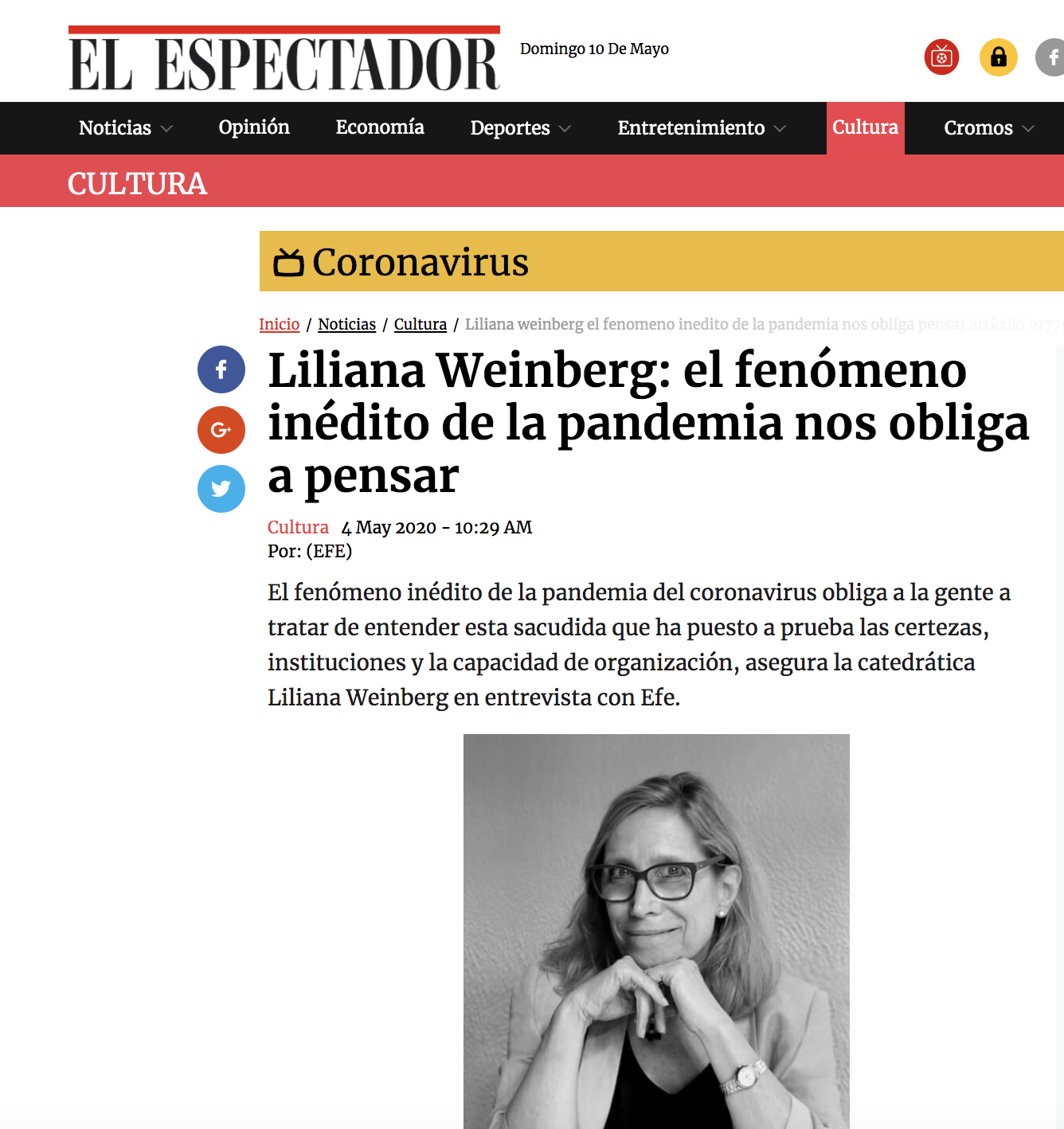 El espectador: esta sacudida que ha puesto a prueba las certezas, instituciones y la capacidad de organización May 10, 2020 Liliana Weinberg Leer el artículo completo